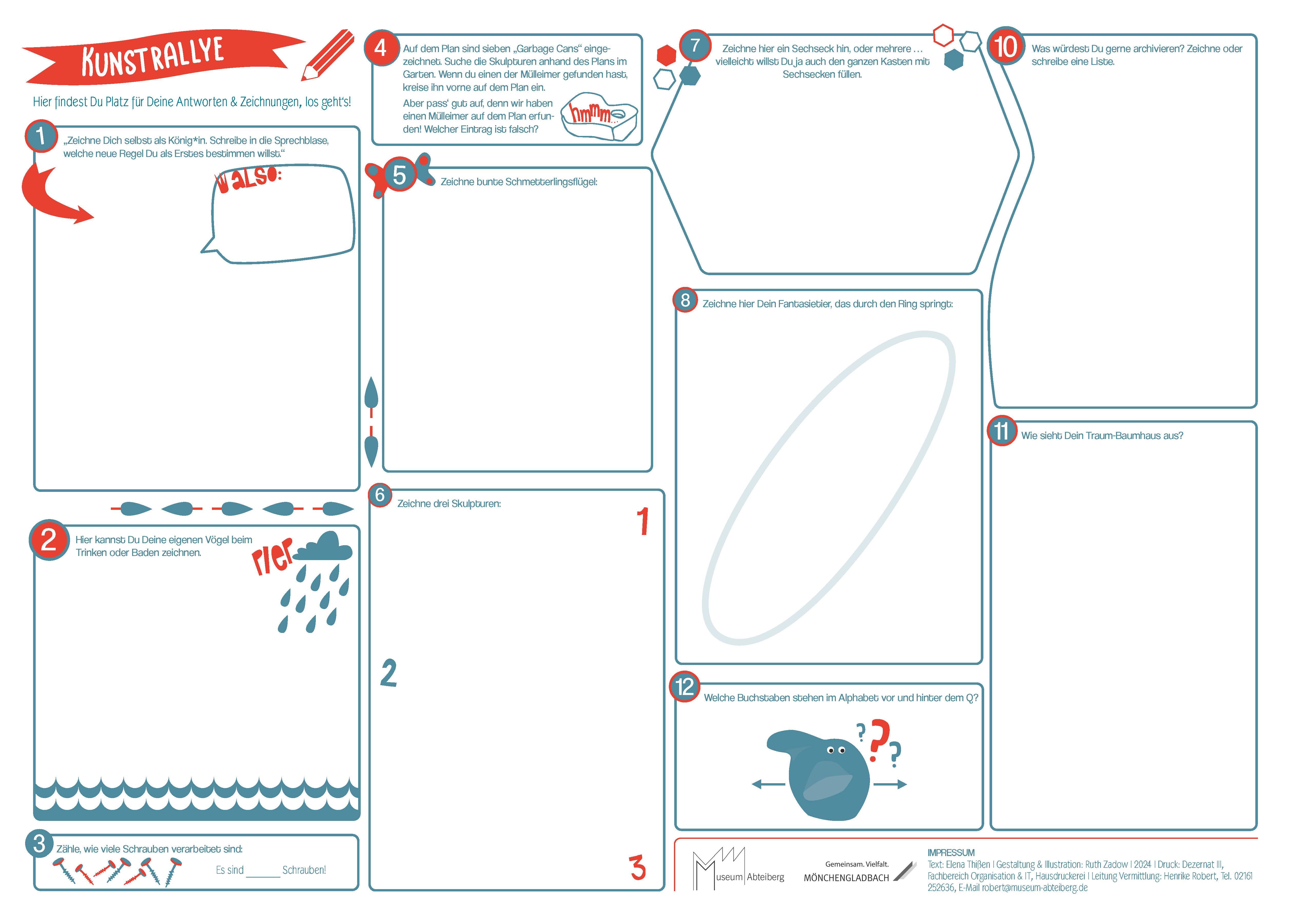 Speziell für Grundschulkinder hat die Vermittlung ein Kreativheft entwickelt, mit dem sich Kinder spielerisch mit der Ausstellung beschäftigen können. Das Kreativheft Herr Andersch und seine Liebe zur Kunst lädt mit spannenden Aufgaben und Fragen zum Malen, Schreiben und Entdecken ein. Einige Aufgaben können anschließend auch in der Schule bearbeitet werden. Das Kreativheft wird in die Führung eingebunden und ist kostenfrei an der Museumskasse erhältlich. Es enthält Aufgaben, die in der Schule weiterbearbeitet werden können.
